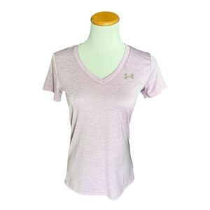 Womens Under Armour Lilac Heathered Tech Twist V-Neck Short Sleeve Shirt - Sz XS