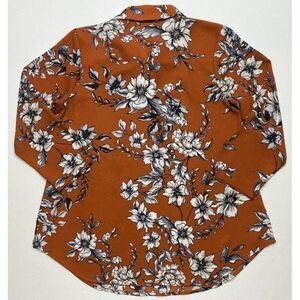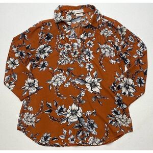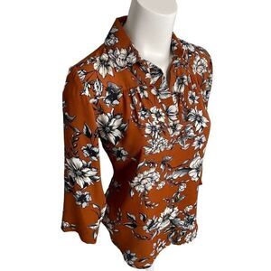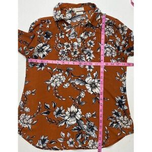 Womens Van Heusen Brown Gray Floral 3/4 Sleeve Blouse Top sz XS