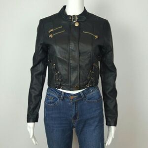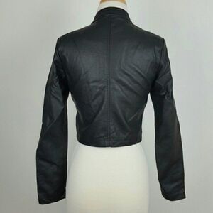 NWT VEGAN LEATHER MOTTO JACKET BLACK by CHOCOLATE U.S.A SELF 70% POLYURETHANE 30%RAYON LINING 100% POLYESTER COLOR BLACK SMALL LENGTH 17" BUST 16" SLEEVE 23" MEDIUM LENGTH 17.5" BUST 17" SLEEVE 23" LARGE LENGTH 18" BUST 19" SLEEVE 24" BUNDLE FOR DISCOUNT - Vegan Leather - Boho - Western - Festival - Grunge core