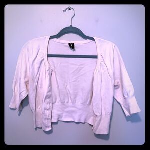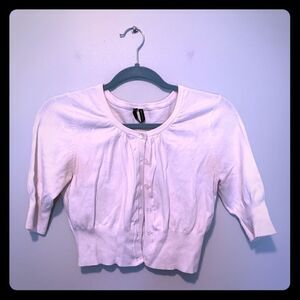 Women’s short, 1/4 sleeve cardigan. Cinches around the sleeves and bottom. All buttons are functional.