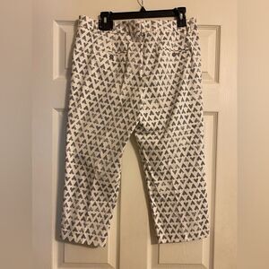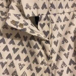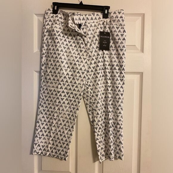 Womens Zac & Rachel Crop Pants Size 12 White with Gray Hearts NWT