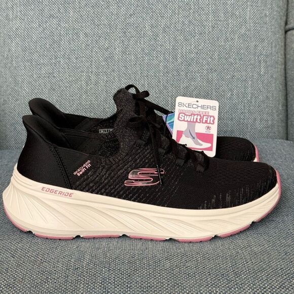 Womens black and pink Skechers Hands Free Slip-ins Edgeride sneaker size 10