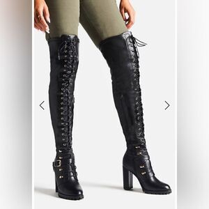Over the knee combat boots.