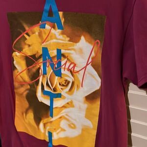 Women’s graphic “antisocial “floral, graphic shirt, size medium, graphic is in great condition, short sleeves, measures 19 inches across the chest with a lake of 27 inches