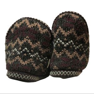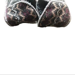 Women’s gray with Aztec print and stitching Mukluks. Has Sherpa style lining; knit ankle slip ons with front and center tassels. Accent stitching above sole. GUC. Bundle and save!