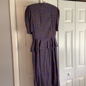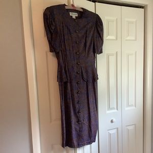 This is a short sleeve dress in size 8. It is Jessica Howard by Mitchell Rodbell. It is made of 100% rayon and is dry clean only. It was made in the USA. Excellent condition.