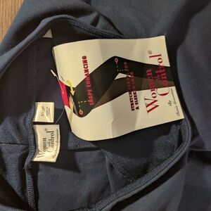 These are navy blue Women with Control Shape Enhancing Leggings. These leggings measure 33.25 inches in length, 26 inches at the inseam, 13 inches at the waist, 16 inches at the hips, and 8.25 inches at the front rise. These leggings are new with tags and no flaws.