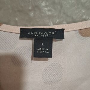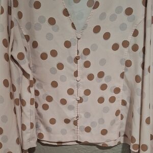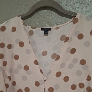 Wome's Ann Taylor Cream and Brown Polka Dot Blouse Size L