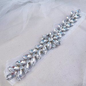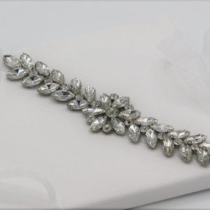 Large rhinestones in a floral pattern make this sash for the bride that loves a bit of drama. A sophisticated touch to both a traditional and modern look.