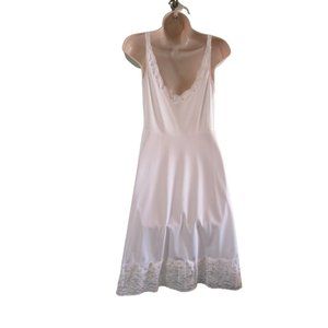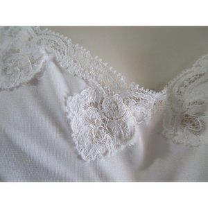 Wonder Maid White Lace Trim Full Slip Sz 32 Polyester Metal Findings Yellowing