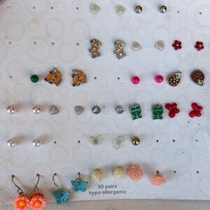 Condition: Pre-owned/Excellent Used Condition. NOTE: The other package has been opened and is missing earrings. Selling them as is. There are no other issues. These variety sets include: roses, flowers, other animals, frogs, butterflies, ribbons, unicorns, etc. Please look at the photos of measurements and other details in this listing.