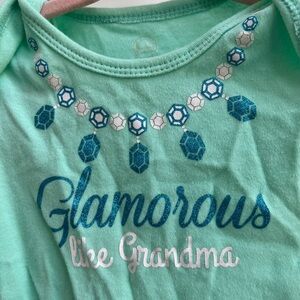 Wonder Nation 6-9M Glamorous Like Grandma Green & Blue Short Sleeve Girl Onesie