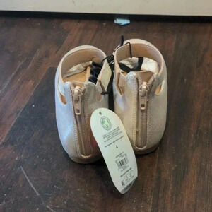 Shoe Closure: Back zipper closure Materials: Polyurethane upper; Manmade outsole End Use: Dress shoes for special occassions Key Features: Shimmering ankle strap with elastic sides for easy on and off, menmory foam insole, slip- resistant tread.