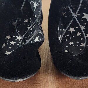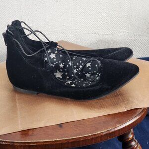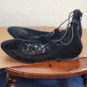 Wonder Nation Black Faux Velvet Faux Tie Back Zipper Instep Ballet Flats Size 5