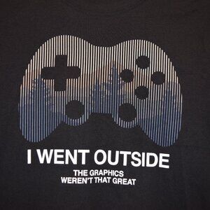 Level up your casual style with this fun gamer-themed graphic t-shirt from Wonder Nation. Featuring a bold video game controller design with the phrase "I Went Outside – The Graphics Weren’t That Great," this tee is perfect for gamers who love humor and comfort. Made from soft black cotton, it’s great for everyday wear, lounging, or showing off your gaming personality.