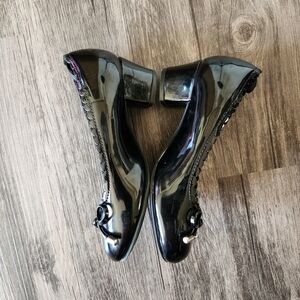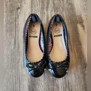 Wonder Nation Black Heeled Dress Up Shoes, great pre worn condition, slight wear to bottoms, size 9 toddlers, memory foam, bow to toe tips, non marking soles