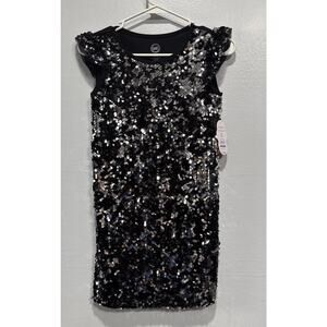 Wonder Nation Black Sequin Party Dress Girls Sz M (7-8) Cap Sleeve Mix Media