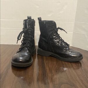 Wonder Nation Black Sparkle Combat Boots Ankle High Lace-Up
