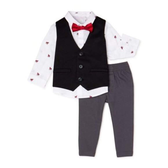 Wonder Nation Boys 5-Piece Outfit Set With Vest Shirt Pants Bow Tie Size 3T