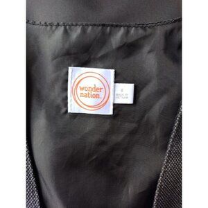 This Wonder Nation boys' vest, size 8, is a refined piece for young gentlemen. Crafted from polyester and cotton, the black vest features a decorative pocket square with a vibrant floral print, adding a touch of sophistication. Ideal for formal events, this vest ensures your child looks polished and stylish.
