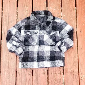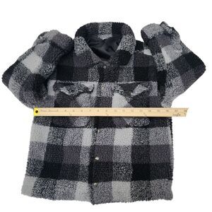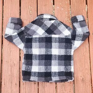Wonder Nation Boys Faux Sharpa Button Trucker Jacket Black Plaid,Size S (6-7)