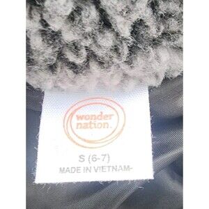 Pre-owned boys Wonder Nation faux Sharpa trucker jacket in size Small ( 6-7). In great condition with no noticeable flaws. This jacket features a soft faux Sharpa design that also keeps your little one warm. With button closure, this boys' jacket easily completes his look and layers seamlessly over his ensemble for a comfortable fit.