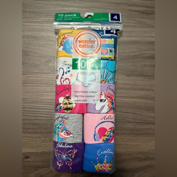 Wonder Nation Cotton Colorful Girls' Briefs 10-Pack size 4-NWT