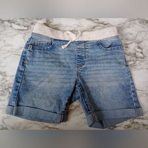Wonder Nation denim shorts girl's size 12. Drawstring is NOT functional just for decoration. Does have pockets. Pre owned. Good used condition. All measurements are approximate
