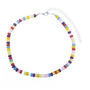 Set includes: 5 choker necklaces: 3 pastel color stretch necklaces, 1 pink braided faux leather necklace, and 1 multicolor beaded stretch necklace