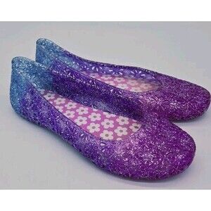 Wonder Nation Girls 13 Casual Jelly Jellies Purple Blue Slip On Shoes Sparkly!