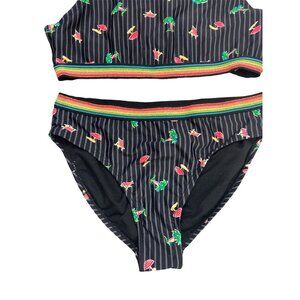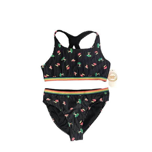 Wonder Nation Girls 2pc Swimwear Black & Palm Trees Sz 10/12