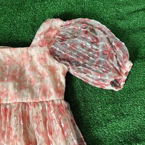 Wonder Nation Girls Apricot Metallic Mesh Puff Sleeve Zip Dress Size 12 Plus