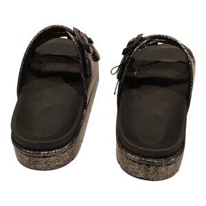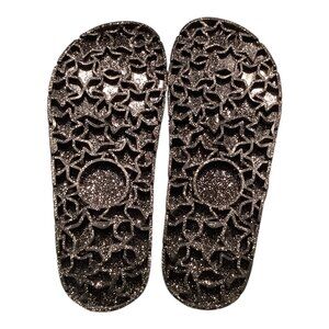 Wonder Nation Girls Black Glitter Jelly Slide Sandals Size 3 Two Buckles Durable