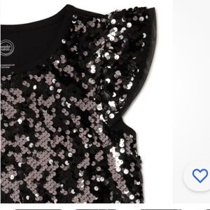 Black/Silver Sequins, Pullover, Round Neck, Stretch, 100% Polyester, Sequins Front Only, Size Medium (7-8), NEW, Firm.