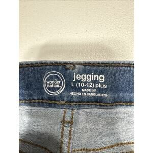 The Wonder Nation Girls Fashion Embroidered Pull On Jeggings pants in size L Plus (10-12) Blue are stylish and comfortable jeggings perfect for casual wear. Made from a blended fabric of spandex and cotton, these jeggings feature an elastic waist for easy wear. The embroidered accents and solid blue color add a touch of flair, while the mid-rise fit ensures a comfortable and flattering silhouette. Ideal for various occasions such as travel, everyday wear, or even school, these jeggings are sure to become a versatile and favorite piece in any young girl's wardrobe.