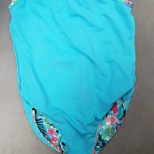 Wonder Nation Girls One Piece Swim Suit Tropical Blue Size L 10/12