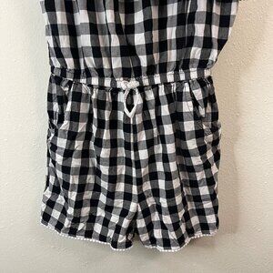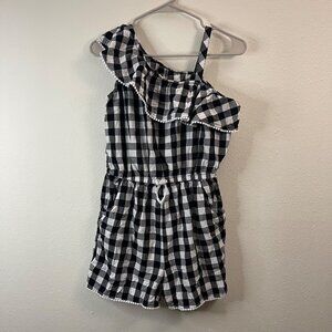 Wonder Nation Girls One-Shoulder Black & White Gingham Ruffle Romper XL 14-16