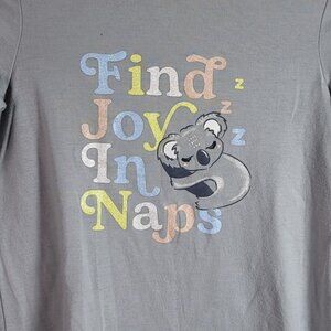 Wonder Nation Gray Pink Pajama Set 2 Pieces Koala Bear Find Your Joy in Naps Long Sleeves Round Neck Striped Fleece Long Pants