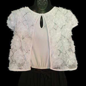 White and sequin with tying belt and black bottom