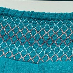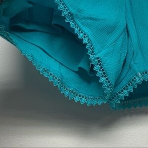 Shorts- Polyester /Teal & Muli-color/Decorative Waist & Bottom Hem
