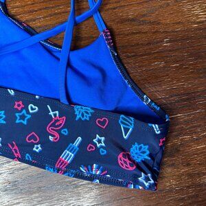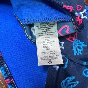 Wonder Nation Girls Swim Top XXL/18 Navy Blue Neon Fireworks Flamingo Print High