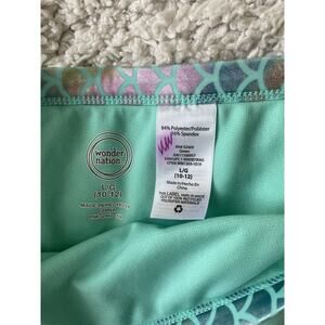 This is a fantastic, super cute Wonder Nation girls sz. 10/12 green mermaid themed two piece bikini. Pretty shade of green. Suit is in excellent condition and looks worn once or twice if that. Adorable set!