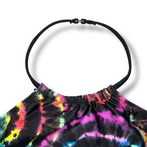 Tie Dye Tankini Swimsuit Top Ruffled Halter Top Black Wonder Nation
