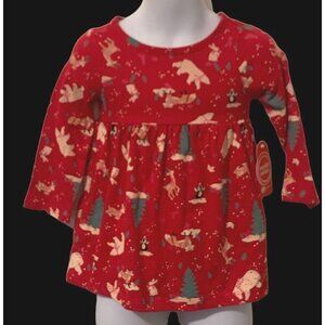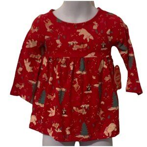 Wonder Nation Girls Winter Animals Knit Dress Size 12M Red Pockets