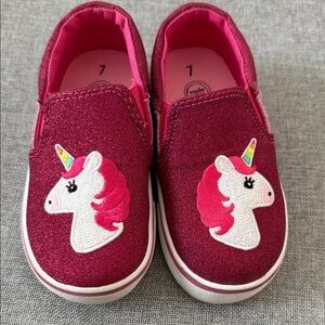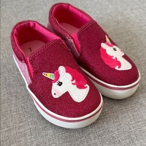 Charming unicorn sneakers with glitter finish. Easy slip-on style. Perfect for playful adventures. very good preowned condition.
