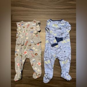 Wonder Nation Gray Breakfast print and Blue whales print Baby Footies size 3/6M