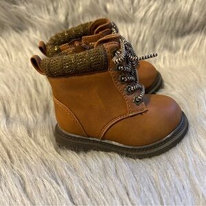 Wonder Nation Hiker Boots Baby Toddler Girls Size 3 Brown Side Zip Booties Shoes