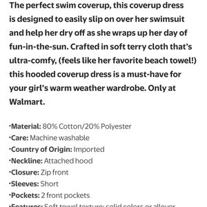 This teal swim coverup from Wonder Nation features a short-sleeved design with an attached hood, perfect for a day at the beach or pool. Its loose, casual fit and zip-front closure offer comfort and ease, while the terry cloth material ensures quick drying.