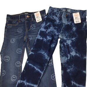 Wonder Nation Jeggings Lot of 2 Denim Stretch Girls S (6-6X) Tie Dye Smiley Face