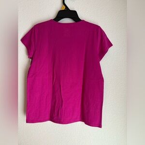 Vibrant magenta tee with playful fruit graphics. Ideal for a cheerful look.